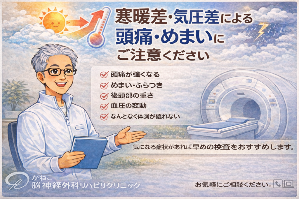 寒暖差や気圧差が大きい日が続いています。