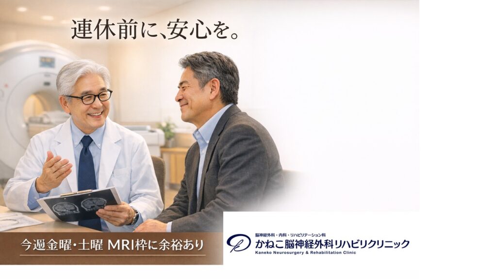 連休前の今週末(金曜・土曜)は、MRI検査の枠に比較的余裕があります。