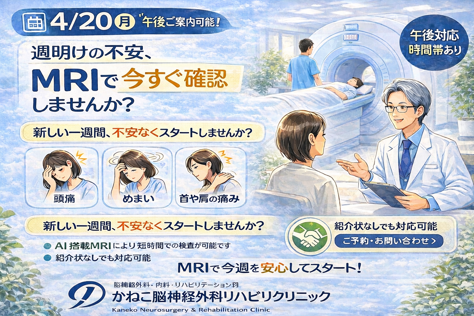 MRI検査やリハビリも当日対応できる場合があります。