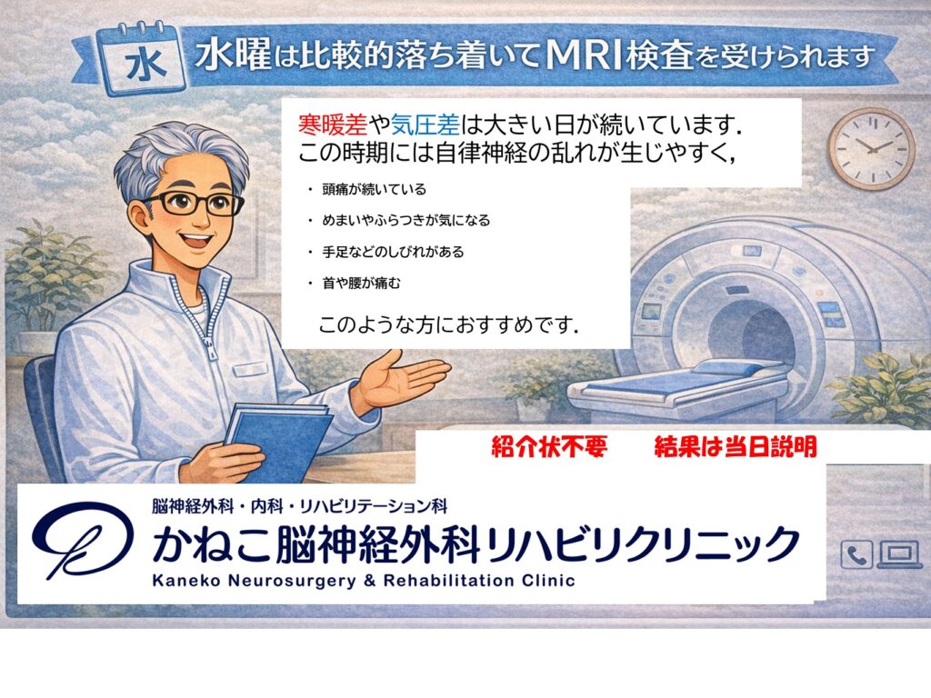 当院では、水曜日は他の曜日と比べて、比較的ゆったりとMRI検査を受けていただける時間帯が多い傾向があります。